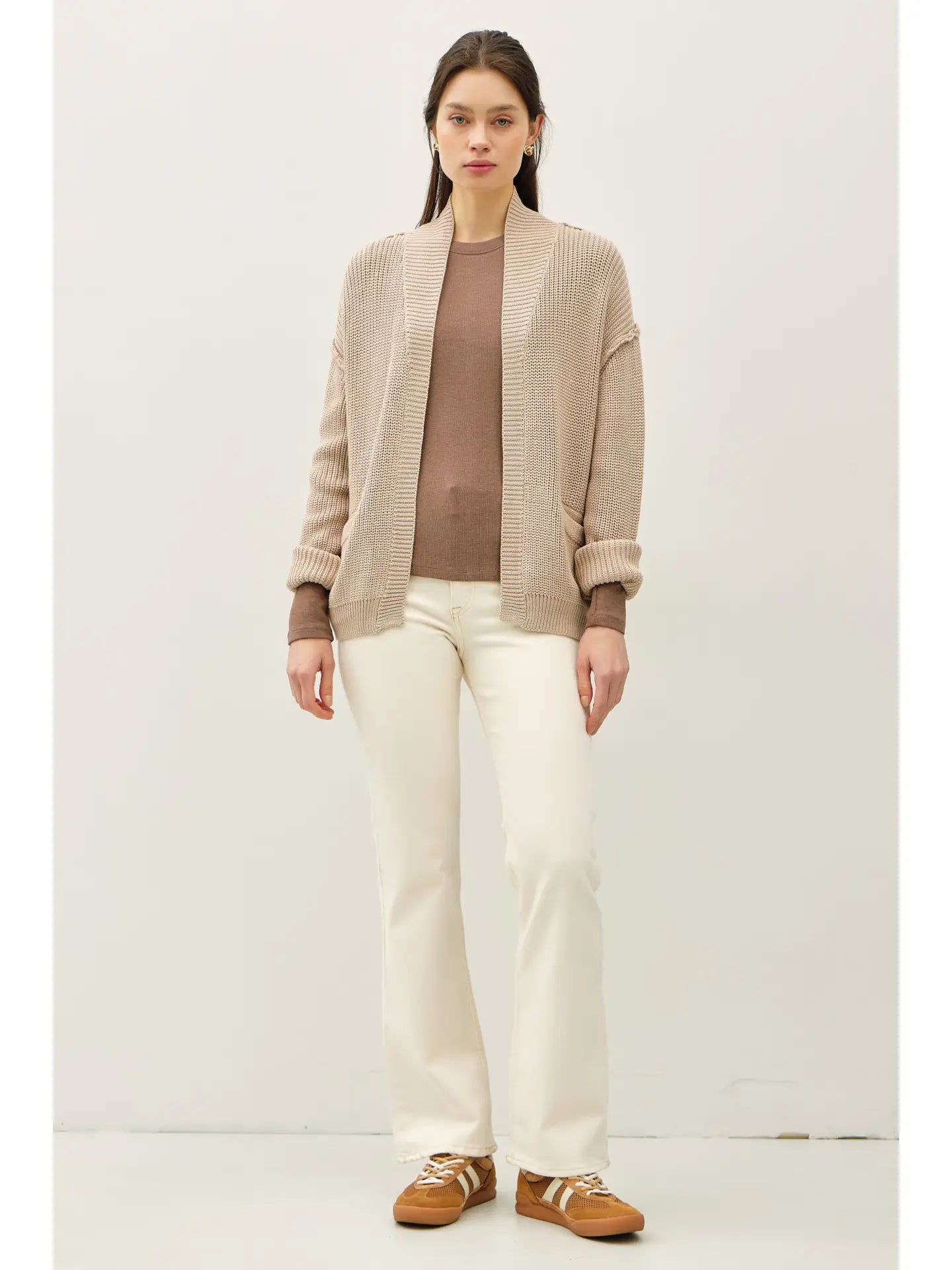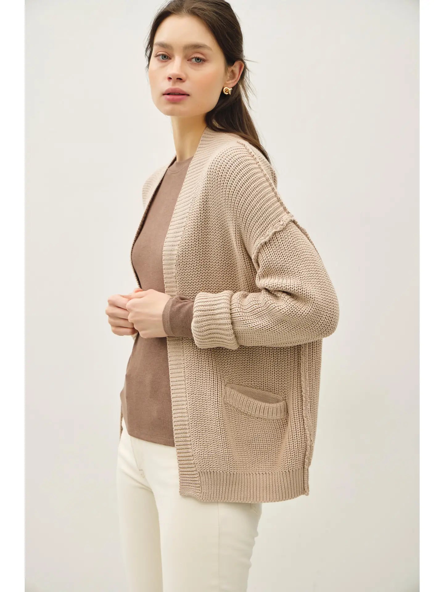 Wrap yourself in cozy charm with The Birch, a chunky ribbed knit cardigan featuring trendy raw seams. Its playful texture and relaxed fit make it perfect for layering on chilly days, adding both warmth and a touch of effortless style to your outfit. Embrace comfort with a twist!