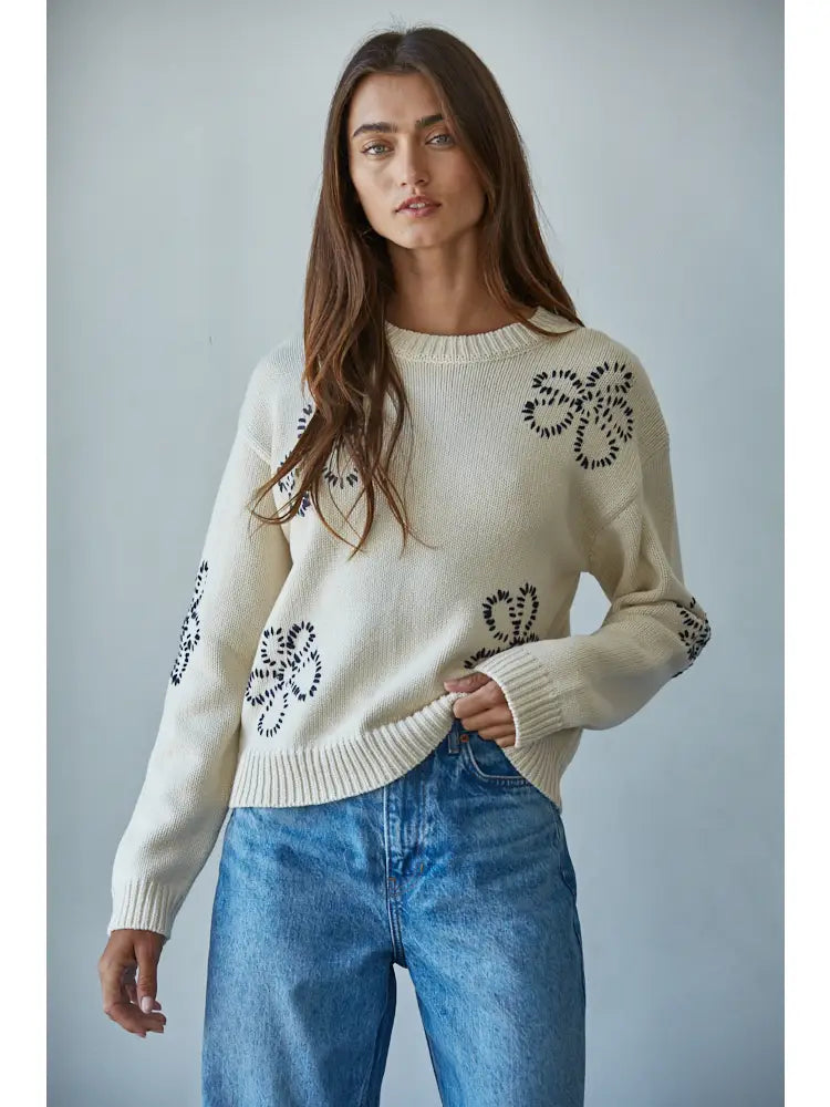 Cozy up in The Julep, a playful knit sweater featuring charming floral stitching that adds a fun twist to your everyday look. With its comfy round neck and long sleeves, this pullover top is perfect for staying warm while showing off your spirited style. It’s your new go-to for effortless, cheerful vibes all season long!