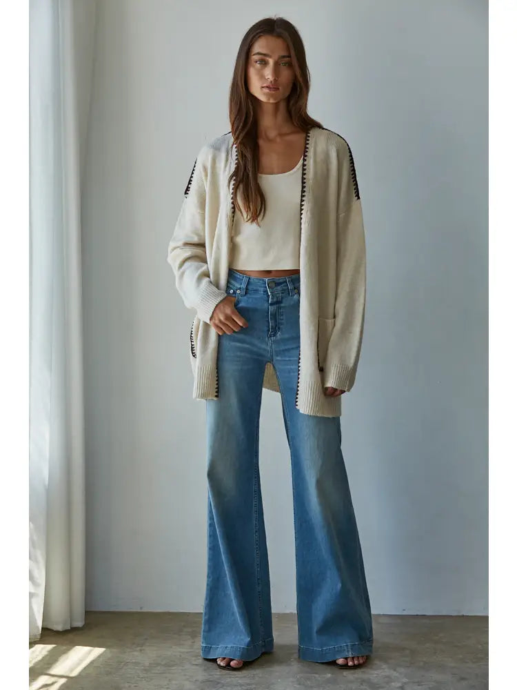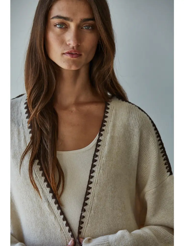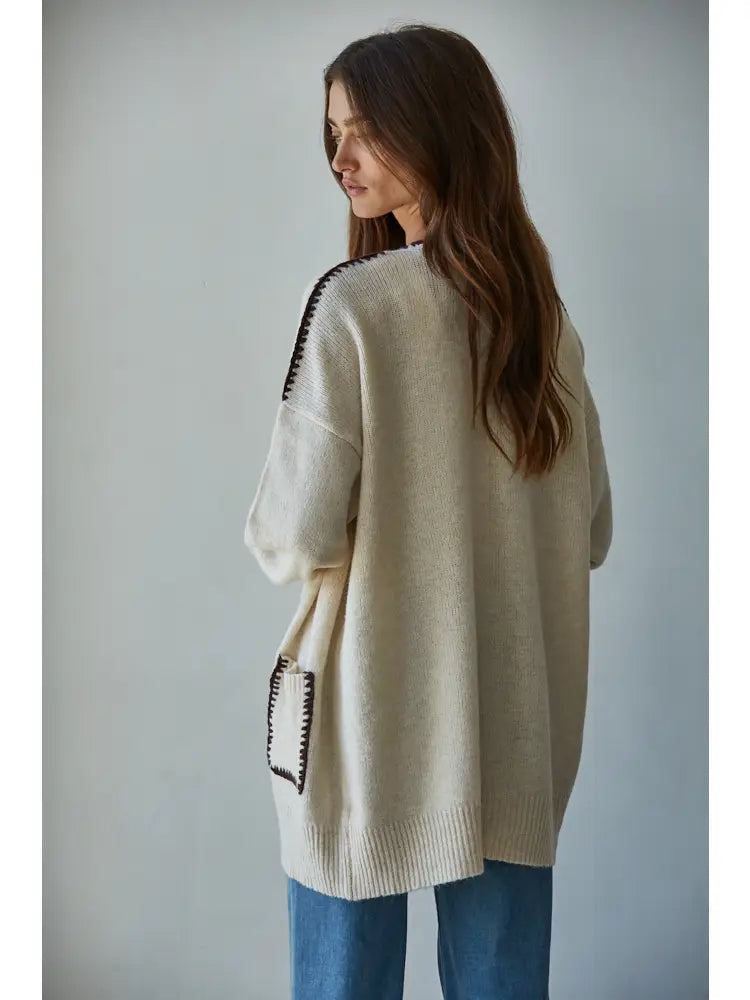 Meet The Wagon Wheel, your go-to cozy companion! This knit sweater features an easy open front, long sleeves for snuggly warmth, and front pockets perfect for hiding your secret treasures. With cute stitch details adding character, it’s the playful cardigan that turns everyday comfort into a stylish adventure.