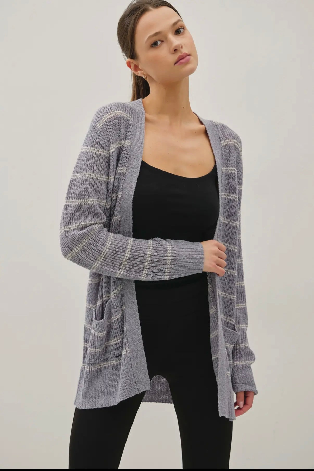 Stay cozy and stylish with this striped cardigan that features convenient pockets for all your essentials. Perfect for any occasion, this quirky piece will become a go-to in your wardrobe!